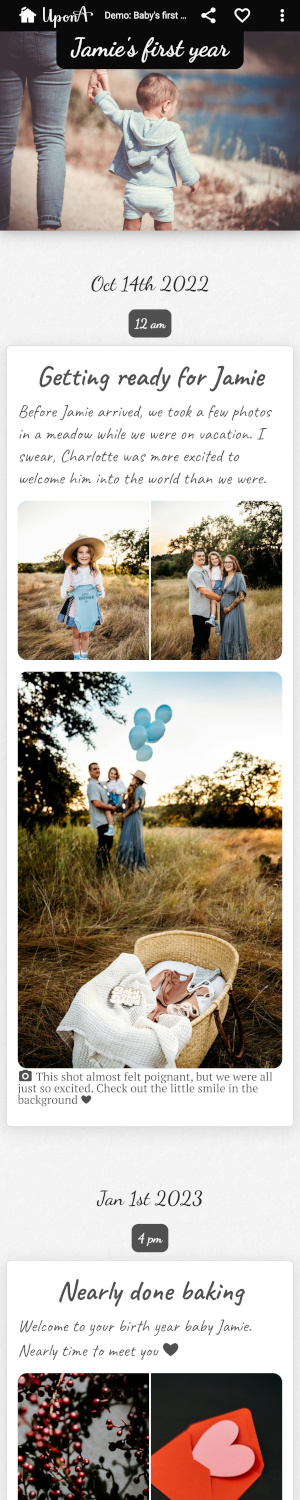 Add updates in real time as they happen, or create a whole story later from memory.